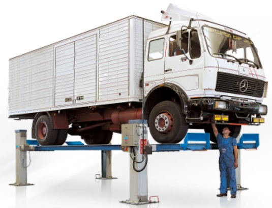 Подъёмник четырехстоечный электромеханический с гладкими платформами.
