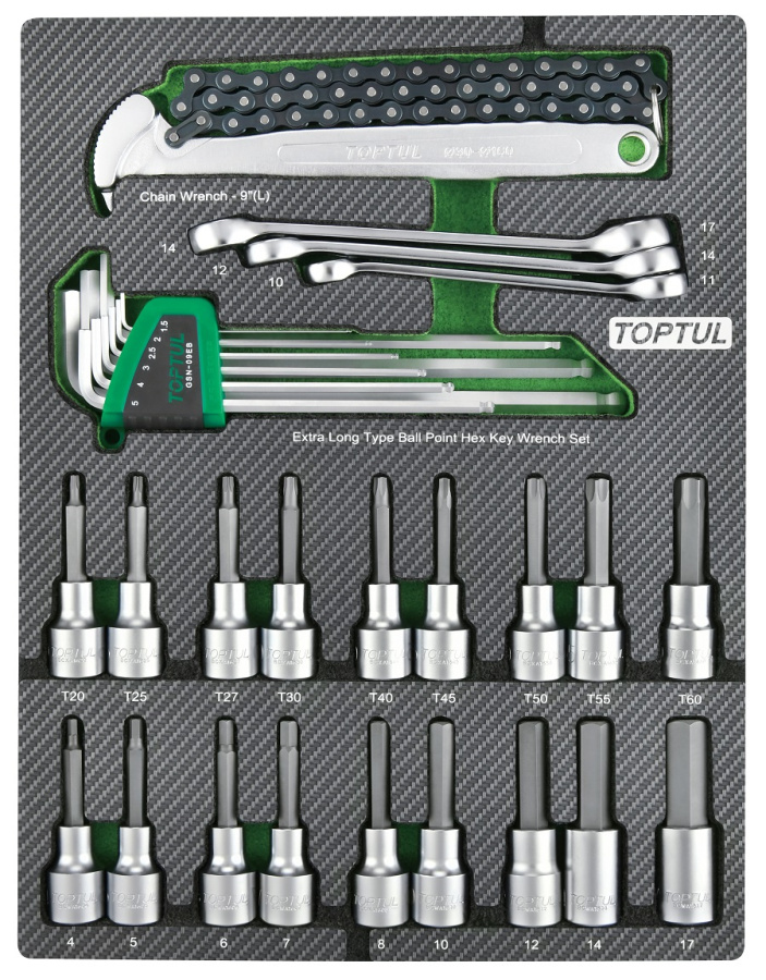 Набор торцевых насадок, шестигранники Г-образные и разрезные ключи, 31 пр. в мягком ложементе TOPTUL GEB3109 купить в Ярославле и других городах России