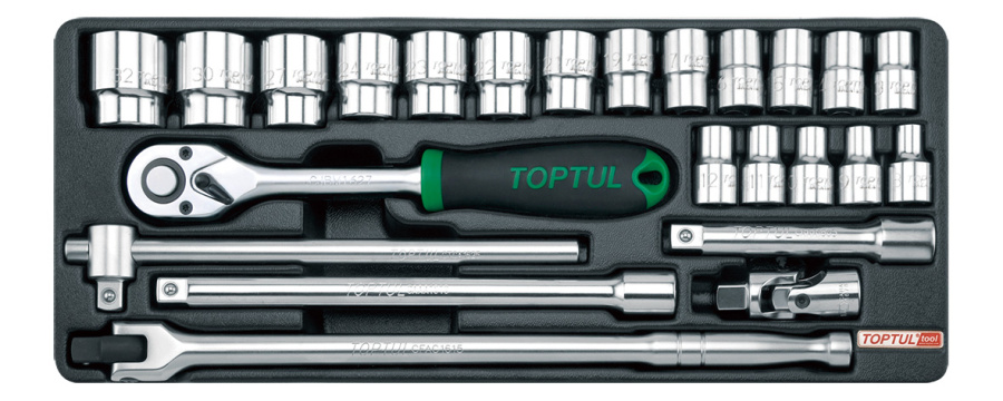 Набор головок и аксессуаров 1/2" 6-32 мм, 24 предмета, в ложементе TOPTUL GCAT2402 купить в Ярославле и других городах России