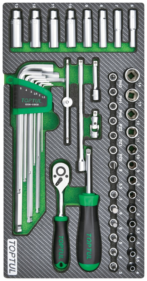 Набор головок и аксессуаров 1/4", 50 пр. в мягком ложементе TOPTUL GEA5004 купить в Ярославле и других городах России