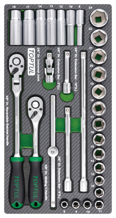 Набор головок и аксессуаров 3/8", 30 пр. в мягком ложементе TOPTUL GEA3005 купить в Ярославле и других городах России