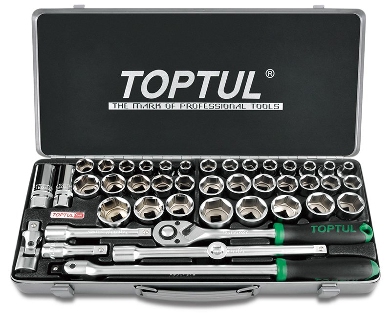 Набор головок и аксессуаров 1/2" 6-гранных 8-32 мм, 43 предмета в метал. кейс TOPTUL GCAD4303 купить в Ярославле и других городах России