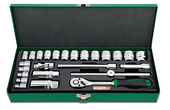 Набор головок и аксессуаров 3/8" 12-гранных 6-24 мм, 25 предметов в метал. кейсе TOPTUL GCAD2504 купить в Ярославле и других городах России