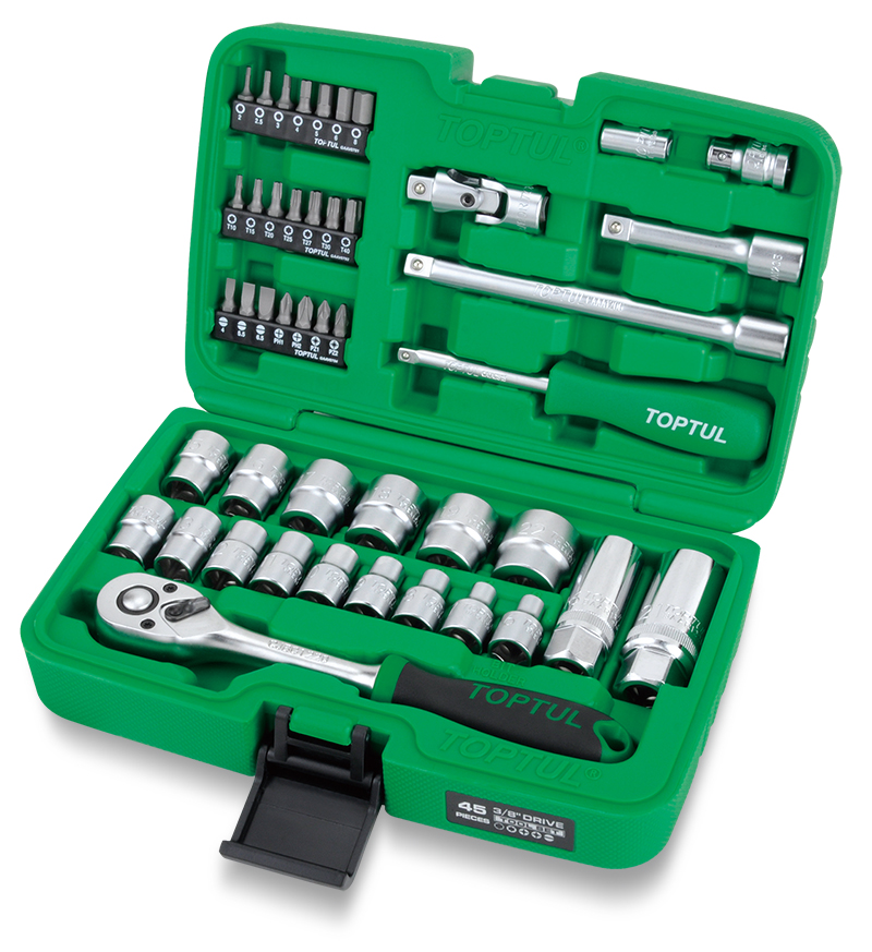Набор головок и аксессуаров 3/8" 6-гранных 6-22 мм, 45 предметов TOPTUL GCAI4501 купить в Ярославле и других городах России
