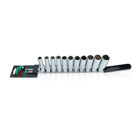 Набор удлиненных 12-гранных головок 1/2" на клип-планке 10-22 мм 11 предметов TOPTUL