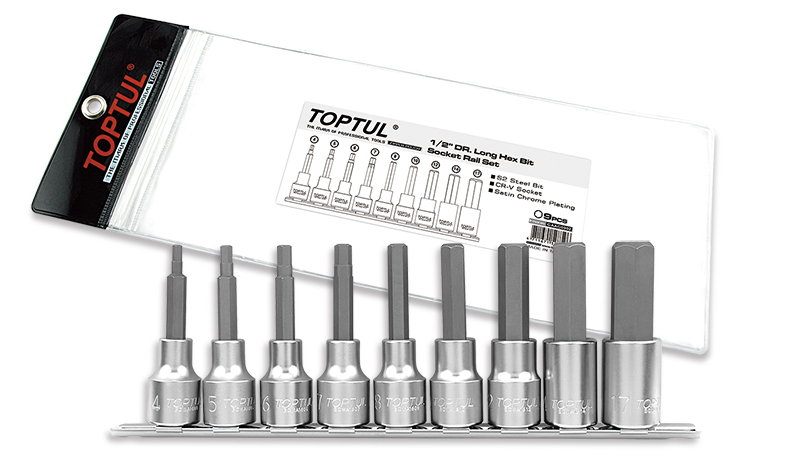 Набор торцевых головок 1/2" с шестигранными вставками 4-17 мм L=80 мм на планке 9 предметов TOPTUL купить в Ярославле и других городах России