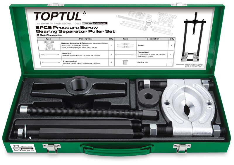 Съемник сепараторного типа 75-105 мм, 8 предметов в метал. кейсеTOPTUL купить в Ярославле и других городах России